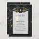 Un design élégant et élégant avec monogramme d'inspiration Art Déco et marbre noir et or dans l'arrière - plan. Un design de style vintage nouveau idéal avec des éléments des années 20. Le mélange des couleurs noir et or crée un style sophistiqué, tendance et chic. Mariage élégant enregistrer la conception de la date avec des éléments modernes. La configuration simple de la typographie lui donne un style distinct. Des articles de papeterie mariage correspondants et d'autres formats d'invitation de mariage sont également disponibles.