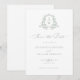 Cette carte de mariage "Save the Date" au motif floral monogramme vert sauge présente un blason de monogramme botanique formel vintage élégant avec des vignes délicates et des accents floraux, et a un style baroque de chinoiserie parfait pour votre mariage de luxe inspiré de l'époque victorienne.