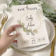 Annoncez votre jour spécial avec cette élégante carte de save the date de mariage au feuillage de eucalyptus. Avec ses feuilles d'eucalyptus peintes à l'aquarelle et ses polices de calligraphie moderne, ce design incarne la simplicité et la beauté naturelle. Parfait pour les mariages botaniques, rustiques ou minimalistes, il donne le ton à votre célébration avec une sophistication intemporelle. Entièrement personnalisable avec vos détails de mariage, cette carte save the date assure que vos invités marquent leurs calendriers avec style.