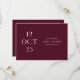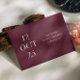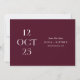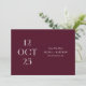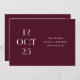 Partagez la date de votre mariage avec une élégance romantique et audacieuse en utilisant cette carte "Save the Date" minimaliste de couleur vin rouge foncé (appelée aussi prune bourguignon). La mise en page éditoriale de la date sur le devant fait une déclaration visuelle raffinée, tandis que le verso offre un espace pour une photo de couple pleine page pour ajouter de la chaleur et de la personnalité. La riche tonalité vin apporte de la profondeur et de la sophistication, ce qui fait de ce design un choix magnifique pour les mariages d'automne et d'hiver, les célébrations en soirée, les lieux de vigne et les esthétiques romantiques modernes. Personnalisez les noms, la date, le lieu et la photo pour la rendre vôtre. Disponible à la fois en carte imprimée et en téléchargement numérique.