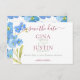 Cette conception comprend un bouquet fluide d'œillets roses foncés, pêche et jaunes et de myosotis bleus. Simple et doux, ce design est parfait pour les mariages informels à semi-formels. Cette carte fait partie de la suite de cartes de mariage Carnation & Forget Me Nots créée par Simply Farmhouse Press.