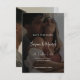 Capturez l'essence de votre histoire d'amour avec nos cartes de sauvegarde de mariage avec superposition de photo moderne élégante. Ces cartes magnifiquement conçues présentent une mise en page élégante et minimaliste, où votre photo de fiançailles préférée est mise en vedette. La typographie sophistiquée, superposée à votre photo, garantit que vos noms et date de mariage sont les points focaux parfaits, ajoutant une touche de classe et d'élégance moderne.