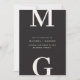 Carte de mariage avec typographie graphique en gras et initiales modernes. Avec une typographie moderne et élégante et un design de dos rayé. Les couleurs peuvent être personnalisées.