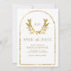 Save The Date Mariage blanc Feuille Gold Laurel Wreath
