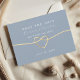 Elégante, minimale, typographie moderne mariage bleu poussiéreux enregistrer l'invitation de date, avec coeur de corde or et simple écriture manuscrite.