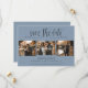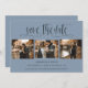 Elégant bleu bleu mariage 3 photo enregistrer les cartes de date avec calligraphie moderne. Personnalisez facilement ce mariage bleu poussiéreux sauvegardez la carte de date avec vos images et les détails du mariage, y compris un site Web mariage.