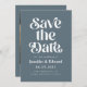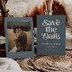 Rétro et élégant enregistrer la carte de date avec la police boho qui dit "enregistrer la date" en couleur bleue. Vous pouvez ajouter une photo au dos.