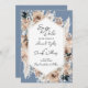 Cette Dusty Blue Floral Boho Wedding Save the Date est tendance dans une palette de couleurs dominantes de bleu poussiéreux, beige et champagne. Il dispose de beaux roses d'aquarelle romantique détaillée et floraux avec l'herbe de pampas. Cette belle palette de couleurs est parfaite pour un printemps, été ou mariage de automne. Personnalisez avec tous les détails de votre mariage.