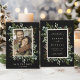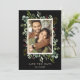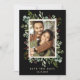 Cette invitation de mariage avec photo à conserver présente de l'eucalyptus aquarellisé, des feuilles vertes, des baies rouges, des branches de pin et un cadre rectangle en faux or avec un texte personnalisé au dos. Pour une personnalisation plus avancée de ce design, veuillez cliquer sur le lien "Personnaliser davantage". Des articles assortis sont également disponibles.