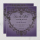 Célébrez votre amour dans la grandeur de la romance gothique avec notre mariage captivant, enregistrez la carte de date. Offrez-vous le charme sombre et l'élégance intemporelle avec notre cadre cardiaque en filigre noir en trois dimensions, enveloppant le texte noir gras contre un arrière - plan violet victorien vintage. Ce design dégage un charme mystérieux, parfait pour les couples qui souhaitent imprégner leur mariage d'un air de sophistication spectaculaire. Les détails complexes du cadre cardiaque en fibre ajoutent profondeur et texture, créant un point focal fascinant qui capture l'essence de votre histoire d'amour unique. Dernière touche de personnalisation, le fond du design présente le même cadre cardiaque en fibre enchanteur orné des initiales du couple, ajoutant une touche subtile mais significative à ce chef-d'oeuvre gothique. Créé par Simply Farmhouse Press.