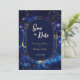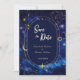 Annoncez votre journée spéciale avec cette Elegant Chic Blue Celestial Save the Date Card, où romance cosmique rencontre design raffiné. Doté d'un espace bleu foncé d'inspiration arrière - plan et d'un cadre délicat et gracieux, cette carte élégante capture la magie du ciel nocturne. Parfait pour les mariages à thème céleste, il donne un ton sophistiqué et enchanteur à votre prochaine célébration.