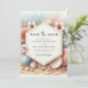 Classic Seashell Beach Wedding apporte la beauté de l'océan à votre sauvegarde de la date annonce. Cette carte présente d'élégants motifs de coquillages, parfaits pour une célébration balnéaire intemporelle. Entièrement modifiable en ligne, vous pouvez customiser chaque détail pour refléter votre vision pour votre mariage sur la plage. Avec une option de téléchargement instantané, vous aurez une carte numérique étonnante prête à partager avec vos invités, les invitant à se joindre à votre histoire d'amour côtière.