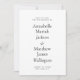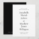 Modèle d'invitation de mariage à typographie simple et minimaliste avec grands noms et code QR personnalisé au dos, en noir et blanc.