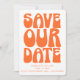 Rendez votre jour spécial inoubliable dès le début avec cette carte "Sauvez la date" rétro, mettant en vedette une typographie orange gras rappelant les années 1970. Parfaite pour les couples qui aiment l'esthétique ludique et nostalgique, ce design donne le ton pour des célébrations de mariage amusantes et vibrantes. Idéal pour les thèmes de mariage bohème moderne, rétro ou non conventionnel, cette carte peut être personnalisée avec vos noms, date et détails du lieu pour créer une annonce mémorable que vos invités adoreront. Disponible imprimée ou en téléchargement numérique. Ajoutez votre code QR au verso.