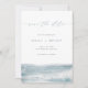 Annoncez votre célébration au bord de la mer avec élégance grâce à cette annonce de mariage élégante de la collection Basse Mer par Navy Road Creative. Une police d'écriture aérée flotte au-dessus d'une aquarelle océanique douce dans des tons bleus brumeux, associée à un texte moderne minimaliste pour un look frais et côtier. Idéal pour les mariages de plage, les mariages intimes et les événements de destination.