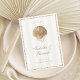 Elégante côte, elle garde la date avec ses coquillages dorés, ses perles délicates et son arrière - plan rayé jaune raffiné avec son cadre subtil. Les noms de script chic ajoutent une touche personnelle, tandis que le dos présente une photo et un code QR qui se lient à votre site mariage. Idéal pour les fêtes de mariages de plage, de destination ou de côte, alliant charme marin sophistiqué et design intemporel.
