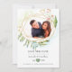 Faire-part de mariage tendance avec un cadre géométrique doré et un lavis aquarelle vert sauge au verso, conçu pour être personnalisé rapidement et facilement selon les spécificités de votre événement.