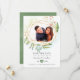 Faire-part de mariage tendance avec un cadre géométrique doré et un lavis aquarelle vert sauge conçu pour être rapidement et facilement personnalisé aux spécificités de votre événement.