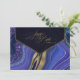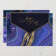 Vous obtenez à la fois le glamour et l'impact élevé avec cet ensemble de mariage de coordination qui comprend des motifs d'agate abstraits, texturés avec des faux cristaux et des reflets dans un film d'or scintillant. Des combinaisons de couleurs frappantes, comme cette suite avec sa palette ciel de nuit du bleu profond de minuit au violet doux, créent l'arrière - plan pour les pièces de cette collection coordonnée. Cette carte Save the Date de mariage contient tous les éléments ci-dessus ainsi qu'une calligraphie élégante sur un étiquette incliné et semi-transparent pour tenir vos sélections de menu. Un modèle est fourni pour ajouter facilement les détails du menu, les initiales et la date du mariage. Affichez le lien de collection sur cette page pour voir tous les éléments correspondants dans cette belle conception ou recherchez ID827 pour voir des choix de couleurs supplémentaires pour cette conception.