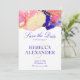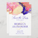 Un mariage moderne lavé à l'encre Enregistrer la carte Date avec en-tête d'art abstrait rose, violet et or. Cette invitation de mariage vibrante à effet agate présente un lavage artistique d'encre colorée qui entoure une piscine d'or. Ajoutez facilement les détails de votre mariage au modèle à l'aide des outils de personnalisation de Zazzle. Veuillez nous contacter si vous avez besoin d'aide amoreamore@paulinebenjes.com