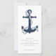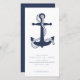 Les pièces de cette élégante suite de mariage présentent un style nautique classique et un style épuré et minimaliste. Des vagues stylistiques dans les teintes allant de l'aqua au bleu marine et une illustration d'ancrage et de corde apportent des accents uniques. Une grande image d'ancrage en bleu marine, sur votre date de mariage et les détails pour donner à cette carte Enregistrer la date un appel frappant. Idéal pour les mariages de club nautique, de bateau, de plage ou d'été. Recherchez ID836 pour voir cette suite complète et d'autres avec des accents d'éléments marins alternatifs.