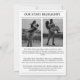 Une carte de sauvegarde à jour sur le thème du journal offre une façon originale et attrayante d'annoncer votre mariage, en mélangeant harmonieusement les détails essentiels avec votre histoire d'amour unique. Cette approche créative non seulement informe vos invités, mais les captive aussi, en donnant le ton à vos prochains noces. En choisissant un journal à jour, vous pouvez créer un récit qui met en lumière votre voyage ensemble, de votre première réunion à la proposition, présenté dans un format qui rappelle le journalisme classique. Ce choix de design permet une riche expérience de narration, rendant votre faire-part à la fois instructif et mémorable. La polyvalence d'une sauvegarde à jour sur le thème du journal répond à diverses esthétiques mariages, que vous recherchiez un charme rustique ou une élégance moderne. Sa nature personnalisable assure qu'il s'harmonise parfaitement avec votre thème mariage, offrant un regard cohérent à travers toutes vos papeteries. Pour ceux qui recherchent une sauvegarde des dates unique, ce format se démarque comme une option vraiment attrayante. Il offre un grand espace pour inclure des anecdotes personnelles, des photos, et même des sections amusantes comme "nouvelles fiançailles" ou "prévisions mariages", ajoutant une touche ludique mais informative. De plus, les journaux à jour sont non seulement uniques, mais aussi rentables. De nombreux modèles sont disponibles et faciles à customiser, vous permettant de créer des cartes économiques à économiser sans compromettre la créativité ou la qualité. Cette approche do-it-yourself vous assure que vos annonces sont à la fois abordables et personnalisées. A l'ère numérique d'aujourd'hui, les sauvegardes électroniques ont gagné en popularité. Un design sur le thème du journal se traduit bien par un format en ligne, ce qui le rend adapté à une sauvegarde en ligne ou à un événement de sauvegarde. Cela vous garantit que votre faire-part arrive à vos invités rapidement et dans le style. La sauvegarde à jour du journal est également adaptable aux différentes préférences de conception. Que vous soyez enclin à sauvegarder les dattes rustiques avec des tonalités terreuses et des polices vintages ou à sauvegarder les dattes modernes avec des lignes épurées et une typographie contemporaine, ce thème peut être adapté à votre vision. Incorporer un thème de journal dans votre sauvegarde à jour fournit non seulement des détails mariages essentiels, mais offre également une plate-forme pour partager votre histoire d'amour dans un format créatif et attrayant. Un excellent choix pour les couples qui souhaitent faire une impression durable sur leurs invités, afin que votre faire-part mariage soit à la fois instructif et mémorable. En résumé, une sauvegarde à jour sur le thème du journal est une option polyvalente, personnalisable et rentable qui vous permet de partager vos détails mariages et votre histoire d'amour d'une manière unique et attrayante. Que vous optiez pour une carte physique ou une version électronique, cette conception vous assure que votre faire-part se démarque, donnant le ton parfait pour votre prochaine célébration.