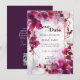 La "Fuchsia Enchantment : Watercolor Mariage Suite" étend son charme à la carte Save the Date, capturant l'essence de la romance et de l'anticipation. A l'avant, une scène pittoresque se déroule alors que des fleurs fuchsia grace l'arrière - plan, créant une toile captivante. Les noms du couple occupent le devant de la scène, révélés avec élégance à côté de la date significative et de l'emplacement enchanteur de leur célébration. En retournant vers l'arrière, un arrière-plan bordeaux royal offre un contraste raffiné. Ici, une touche moderne vous attend avec un code QR discret. Lorsqu'il est scanné, ce code conduit les clients vers le site Web du mariage personnalisé du couple, fournissant un moyen pratique et à la fine pointe de la technologie pour accéder à des détails et des mises à jour supplémentaires. Ce mélange harmonieux d'élégance traditionnelle et de confort contemporain garantit que la "Fuchsia Enchantment : Watercolor Mariage Suite" Save the Date card devient un souvenir mémorable et fonctionnel pour tous les destinataires.