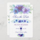 Un agencement floral sophistiqué, avec des fleurs violettes et bleues peintes à la main et un feuillage vert tendre, conçu dans un style délicat aquarelle. Cette mise en page polyvalente s'applique à merveille à la papeterie mariage, à la signalisation de la réception, aux menus, aux cartes de sauvegarde et aux notes de remerciement. La palette de couleurs vibrante mais élégante mélange les teintes tendance de l'améthyste, de l'indigo, du saphir et du vert eucalyptus, ce qui en fait un endroit parfait pour des célébrations modernes avec une touche romantique et artistique.