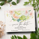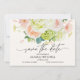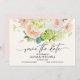 Belle aquarelle d'hydrangées blanches et vertes avec des roses roses et crème, marguerites et petites fleurs et feuilles créent ces mariages enregistrer les cartes de date avec vos détails en lettres chic. CORRESPONDRE des articles dans notre magasin.