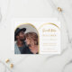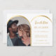 Une photo Enregistrez la carte de date pour votre mariage Sur le devant : Ajoutez votre propre photo de taille verticale. Cadre de l'arc photo en or Faux. Un arrière - plan blanc, un texte doré. Personnalisez et ajoutez vos noms et la date.