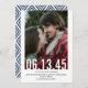 Moderne et élégant enregistrer la carte à plat date avec une typographie simple avec motif de diamants bleu marine. Customisez cette carte en ajoutant votre propre photo et vos détails.