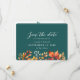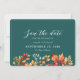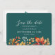 Annoncez votre prochain mariage dans le style avec cet automne boho enregistrer la carte de date avec des tons turquoises riches, aquarelle feuillage d'automne et des polices de caractères élégantes. L'arrière comprend de l'espace pour votre photo fiançailles et votre site mariage. Une façon parfaite de donner à vos invités une tête-à-tête chaleureuse et élégante avant le grand jour !