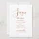 le design montre classique mariage élégant enregistrer la date en terracotta calligraphie orange brûlée et typographie avec arrière - plan blanc. le design est classique unique et sera parfait pour votre mariage.