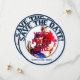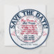 Mariage de baseball Thème-Round Enregistrer les cartes de date. Le côté avant de la carte est un insert/cadre photo. Bleu des anneaux intérieurs et extérieurs avec une photo personnalisée au centre. Retirez mon insert photo et remplacez-le par une photo de votre propre. Le texte décoratif en verre bleu tourne autour du haut et dit : ENREGISTREZ LA DATE. Une autre zone de texte est en bas pour que vous puissiez personnaliser avec. Modifiez la date, écrivez son nom et ses noms, etc. Supprimez/effacez le texte si vous ne le voulez pas. Ce texte est des deux côtés de la carte. L'arrière - plan extérieur de la jante est des bandes de baseball bleues et blanches. Sur le dos de la carte, vous avez le même texte en haut et en bas sur un arrière - plan rayé. De petits ornements de coeur rouge se trouvent entre les mots. L'arrière - plan central est blanc massif avec des balles de baseball éparpillées un peu partout. Le texte décoratif en verre dit : LUI et ELLE (vos noms) montent à la plaque et battent 1000 que leur amour sera dernier pour toujours. Les équipes fusionneront en une seule sur...votre date.Les invitations à thème du mariage de baseball sont disponibles en plusieurs mixages et matchs motifs. Ces invitations incluent également les enveloppes.