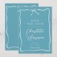 Une écriture simple manuscrite moderne minimaliste typographie blanche sur mariage bleu enregistrer le faire-part de date, encadré d'un cadre ruban ondulé avec arc dans un style dessiné à la main. Style de coquette fantaisiste informel. Disponible en version imprimée, en téléchargement numérique ou les deux.