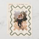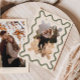Whimsical et curky enregistrer la carte de date avec un cadre ondulé dessiné à la main autour de votre photo. La couleur est vert olive.