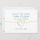 Simple, élégant, minimaliste Mariage turquoise et blanc Enregistrer la Date Invitation avec script de calligraphie manuscrit simple et coeur de corde d'or.