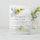Événement de mariage champêtre rustique avec tournesols lumineux et eucalyptus, carte de rappel personnalisable selon vos besoins.