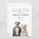 Illustration fantaisiste du chien d'un marié dans un costume élégant et du chien d'une mariée avec un nœud rose