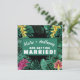 Célébrez votre mariage tropical ou de destination avec ce modèle facile à mettre à jour. Remplissez simplement le nom, l'âge, la date, l'heure, le lieu de la fête et toute note de réponse ou autre information. Changez de "Marc et Anthony se marient !" à "les Willoughby organisent Noël !". Disponible en de nombreux modèles pour chaque occasion. Le design charmant présente une peinture à l'aquarelle inspirée des jungles de la forêt tropicale et des plantes hawaïennes dans la nature.