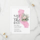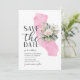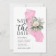 Élégant faire-part de mariage de destination en Californie avec une illustration de l'État en fleurs roses.