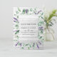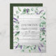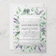 Carton d'invitation de mariage rustique de campagne à la lavande argentée de feuille verte avec un envers en toile de jute conçu pour être rapidement et facilement personnalisé aux spécificités de votre événement. Idéal pour tout thème ou mariage de jardin donné.