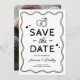 Profitez du charme de nos cartes de mariage de date, fantaisistes et dessinées à la main. Chaque carte est une oeuvre d'art qui présente des illustrations amusantes de doodle, des bordures de ruban, des coeurs d'amour et des anneaux mariages. Conçues sur un arrière - plan blanc frais et customisées avec votre photo, ces cartes sont plus qu'un faire-part - elles sont le premier chapitre de votre histoire mariage.