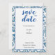 Save The Date Mariage de lin Floral Bleu Blanc Date de sauvegard