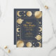 Cette élégante carte d'économie d'heure capture la beauté enchanteresse d'un mariage sur le thème céleste, avec un design sophistiqué de la lune en croissant comme point focal. La lune de croissant, délicatement ornée de détails dorés, repose contre un arrière - plan marin ou bleu nuit, évoquant le charme serein et mystique d'une nuit étoilée. Autour de la lune, des étoiles dorées chatoyantes créent un sentiment d'émerveillement et de romantisme. Le texte de la carte, y compris les noms du couple et la date du mariage, est magnifiquement scénarisé dans une combinaison de calligraphie moderne et de polices serif classiques. Le texte est gravé dans de la feuille d'or, s'harmonisant parfaitement avec le thème céleste et ajoutant une touche luxueuse. Le message d'enregistrement de la date est affiché en évidence, invitant les invités à marquer leur calendrier pour la célébration à venir. La carte comprend également une note subtile indiquant qu'une invitation formelle suivra, afin que les clients soient informés des détails importants. Imprimée sur des cartons texturés de haute qualité, cette carte de veille offre une sensation riche et tactile qui ajoute à son élégance. L'arrière de la carte comporte une suite du motif étoilé ou une simple couleur solide qui complète le design avant, liant l'ensemble de la pièce. Cette carte de remise à jour est idéale pour les couples qui veulent donner un ton magique à leur mariage, avec un design qui reflète le thème céleste et les feuilles une impression durable d'élégance et de charme.