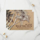 Annoncez votre journée spéciale avec le "Tropical Palm Trees Beach Destination Wedding Save the Date." Doté d'oeuvres d'art de palmiers de style vintage sur un arrière - plan en papier imitation kraft, ce design dégage une élégance rustique et un charme tropical, parfait pour une fête mariage en bord de mer.
