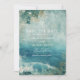 Mariage de rêve à destination sur la plage fantaisiste, carte de sauvegarde avec des lettres formelles élégantes et une illustration de style aquarelle de l'océan et de fleurs.