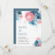 Éblouissez vos invités avec cet élégant enregistrer la date avec de belles fleurs et la typographie moderne. Ajoutez simplement les détails de votre événement sur ce modèle facile à utiliser pour en faire une carte unique de sauvegarde de la date.