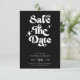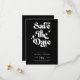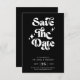 Ce mariage moderne rétro, à l'exception de la carte datation, allie charme vintage et modernité. Doté d'un script audacieux et super sur un arrière - plan noir élégant, ce design crée un faire-part intemporel et élégant pour votre journée spéciale. Parfait pour les mariages d'inspiration rétro, il donne le ton d'une fête chic et mémorable.
