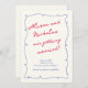Ce mariage sauver la date comporte une bordure fantaisiste Wavy dessinée à la main qui correspond à un script manuscrit avec des couleurs vives, et un Monogramme. La bordure ondulée dessinée à la main et les polices de caractères manuscrites apportent une touche de joie et d'humour à l'événement à venir, qui attirera certainement l'oeil de vos invités et donnera le ton pour une fête amusante et amusante.